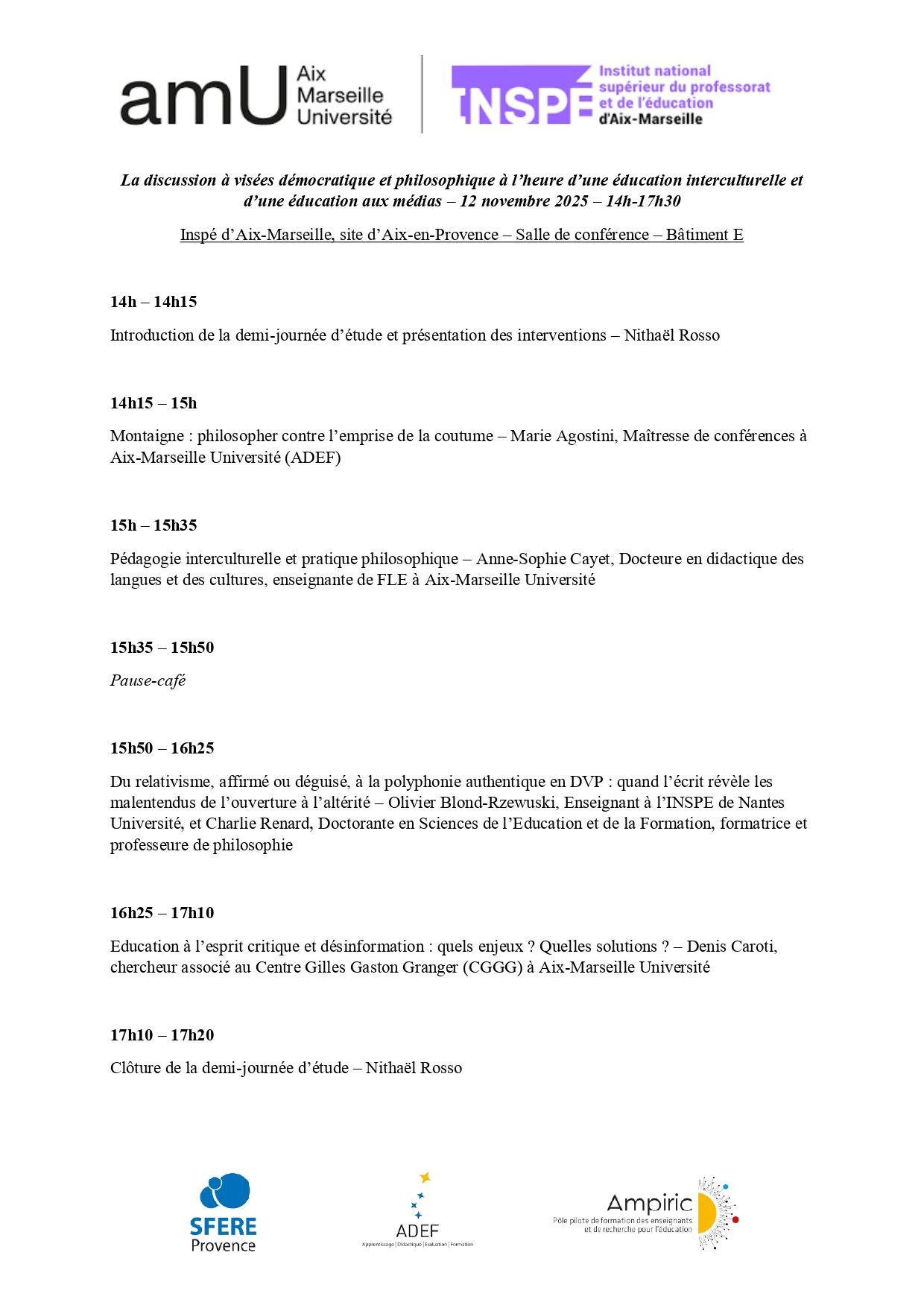 Le 12 novembre 2025 à l'Inspé Aix-Marseille, site d'Aix-en-Provence, salle de conférences Bâtiment E.