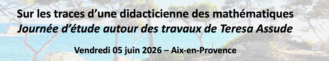 Les nombreuses contributions de Teresa Assude à la recherche en didactique des mathématiques témoignent de la richesse et de la diversité des domaines de recherche qu’elle a abordés. Visant à la fois à présenter ses travaux réalisés au sein de différents collectifs et d’en interroger les prolongements, la journée d’étude regroupe des chercheurs en didactique des mathématiques, mais aussi en sciences de l’éducation, en sociologie, … au niveau international autour de cinq axes thématiques principaux qui la structurent : les dispositifs d’aide préventifs, les élèves à besoins éducatifs particuliers, le dispositif institutionnel Devoirs Faits, le lien entre mathématique et numérique et enfin l’approche comparatiste.