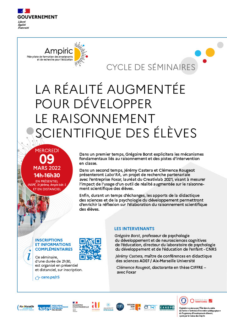 Enfin, durant un temps d’échanges, les apports de la didactique des sciences et de la psychologie du développement permettront d’enrichir la réflexion sur l’élaboration du raisonnement scientifique des élèves.