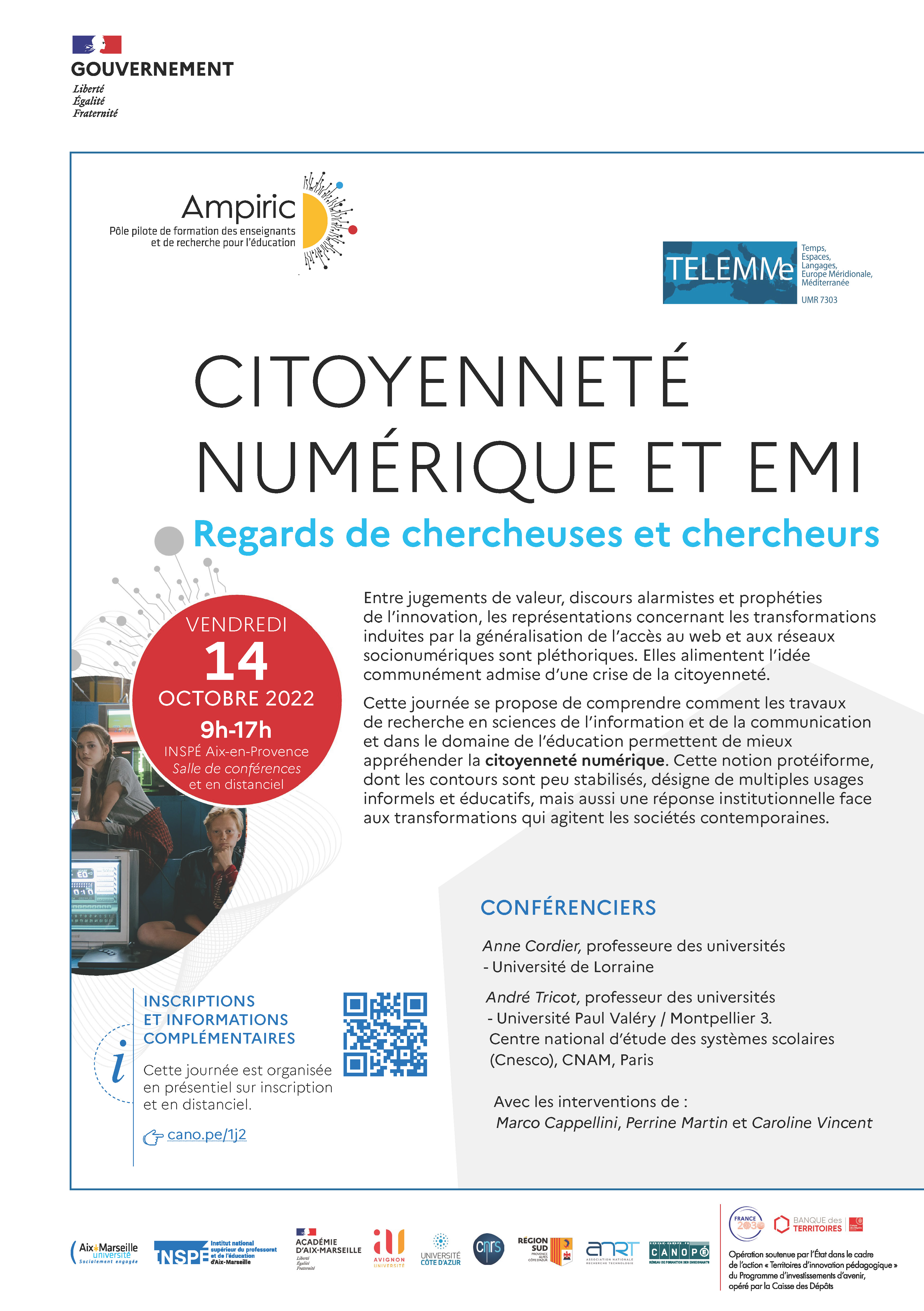Cette journée se propose de comprendre comment les travaux de recherche en sciences de l’information et de la communication et dans le domaine de l’éducation permettent de mieux appréhender la citoyenneté numérique. Cette notion protéiforme, dont les contours sont peu stabilisés, désigne de multiples usages informels et éducatifs, mais aussi une réponse institutionnelle face aux transformations qui agitent les sociétés contemporaines.