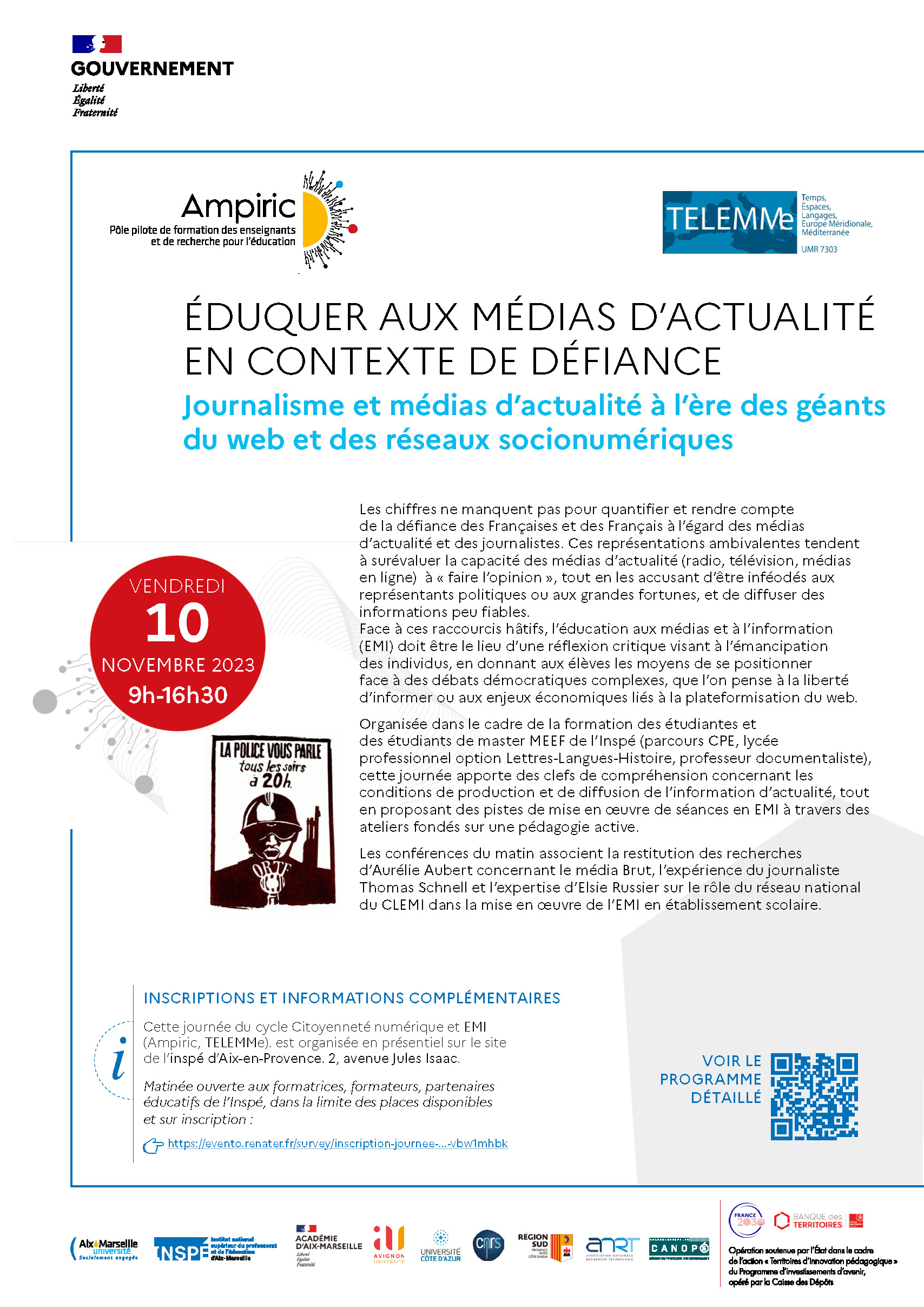 Cette journée apporte des clefs de compréhension concernant les conditions de production et de diffusion de l’information d’actualité, tout en proposant des pistes de mise en oeuvre de séances en EMI à travers des ateliers fondés sur une pédagogie active.