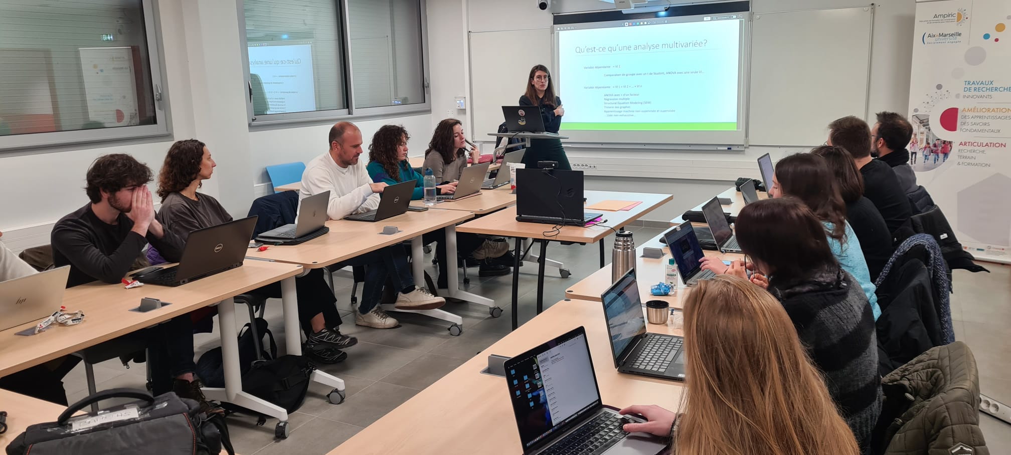 Dans ce dernier séminaire de l'année 2023, les doctorants et post-doctorants du Pôle pilote Ampiric ont abordé l'analyse de données multivariées d'un point de vue exploratoire avec Elise Lefèvre, ingénieure de Recherche à l'Université de Rennes. Ces échanges ont eu lieu au plateau expérimental Jacques Ginestié avec Jonathan Mirault.