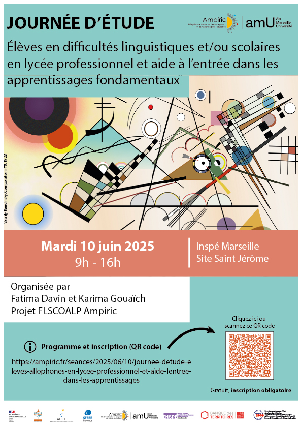 Cette journée d'étude se donne pour objectif de répondre à ces questions et à en soulever d’autres. Elle vient clore le projet Ampiric "Français Langue de Scolarisation pour la mise en sécurité des élèves allophones au lycée professionnel (FLSCOALP)" mené avec les enseignants du lycée professionnel Blériot (Marignane). Elle vise à transformer cette recherche collaborative en une journée d’articulation recherche – formation – terrain sur la question de l’aide à l’entrée dans les apprentissages fondamentaux. Les regards croisés de tous les acteurs de l’éducation (enseignants, formateurs, institutionnels, chercheurs) aboutiront à une réflexion sur les pratiques d'enseignement-apprentissage dans des contextes spécifiques.
